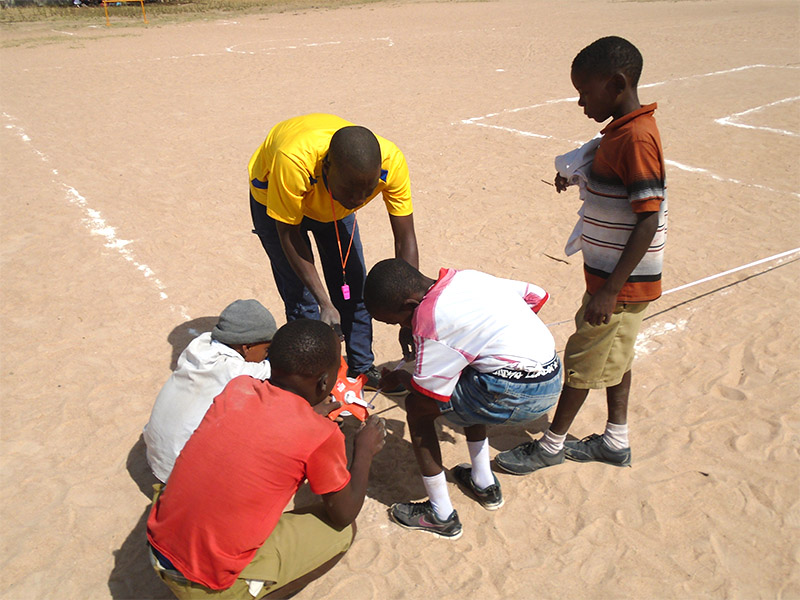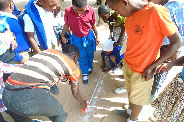 The session applies fundamental Mathematics in Arithmetic, Geometry, and Data to prepare the field of play. This involves the process of field marking, shape making, and measuring size and angles—using standard or non-standard tools.